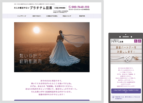 プラチナム目黒様は、多くの方にご成婚いただけるよう40代、50代に特化したサービスを提供した婚活サロンです。