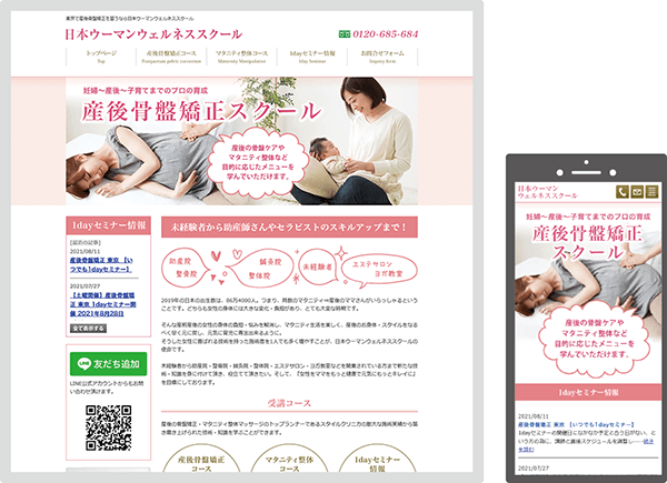 日本ウーマンウェルネススクール様は、整骨院・鍼灸院・整体院産後骨盤矯正の技術や知識を学ぶことができるスクールです。